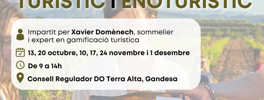 Vols aprendre a crear i impulsar experiències turístiques i enoturístiques amb valor afegit? Apunta’t a aquest curs 100% subvencionat, impartit per Xavier Domènech, sommelier i expert en gamificació turística.