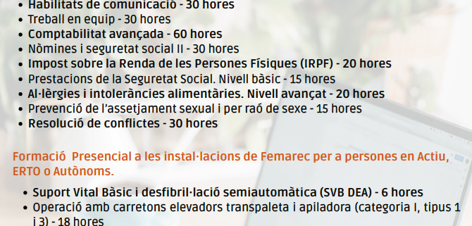 Femarec ofereix formació subvencionada, tant en línia com presencial, adreçada a persones treballadores que vulguin ampliar coneixements, reforçar el seu perfil professional i millorar les seves oportunitats laborals.