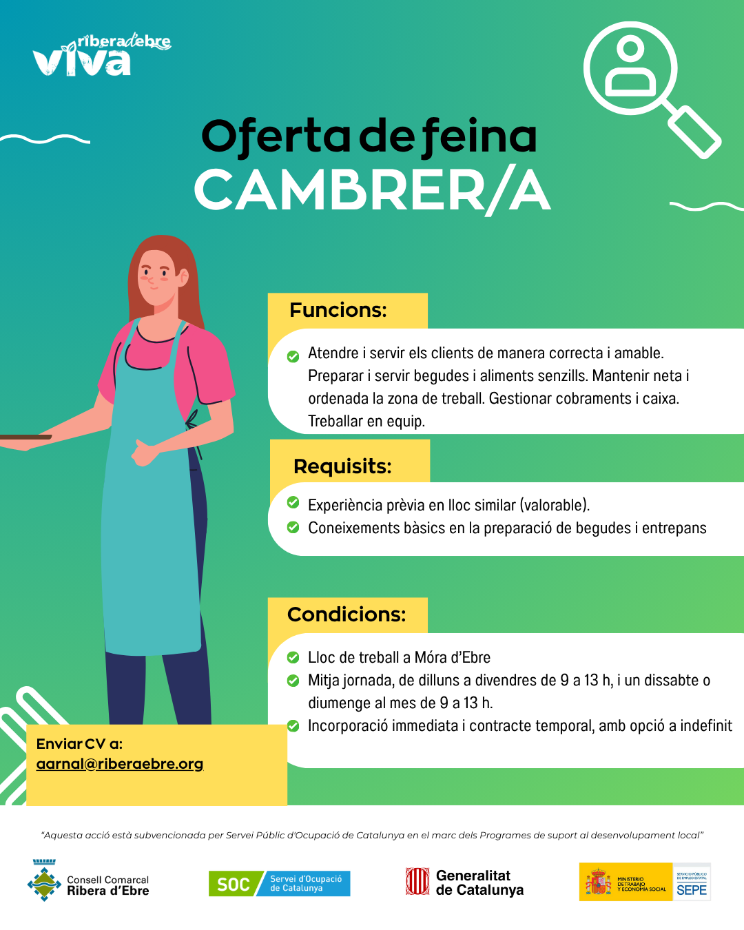 ⚠️ Persones interessades: Enviar CV a aarnal@riberaebre.org, indicant en l’assumpte: OT-Cambrer/a. Recepció de CV fins al 24/10/2025.