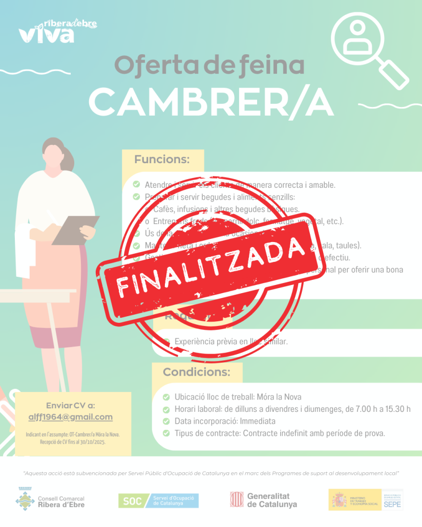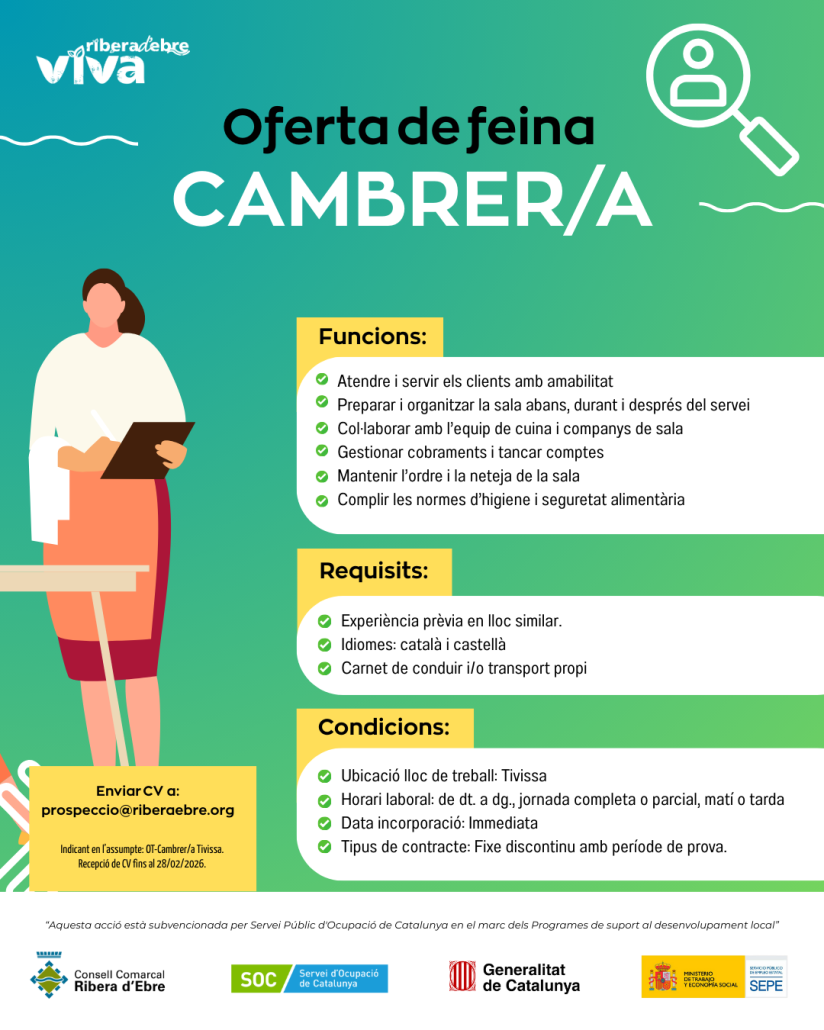 Ofertes laborals que compten amb el suport del nostre Dispositiu d’Inserció: