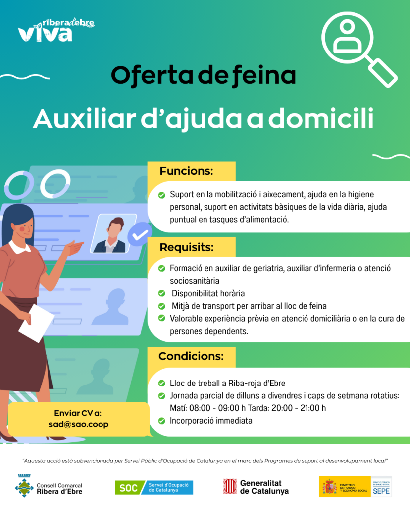 Des del Dispositiu d’inserció sociolaboral Ribera d’Ebre VIVA orientem i assessorem a les empreses en les diferents fases de la selecció de personal i oferim acompanyament personalitzat a les persones per millorar les oportunitats laborals.