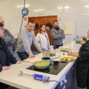 A l’Hospital, l’equip responsable de cuina va explicar com s’organitza el servei d’alimentació en un entorn sanitari, on la planificació, la seguretat alimentària i l’atenció a les necessitats dietètiques específiques són fonamentals. Les persones participants van poder veure el funcionament intern d’una cuina de gran volum i entendre la importància del treball en equip, l’ordre i la precisió.
